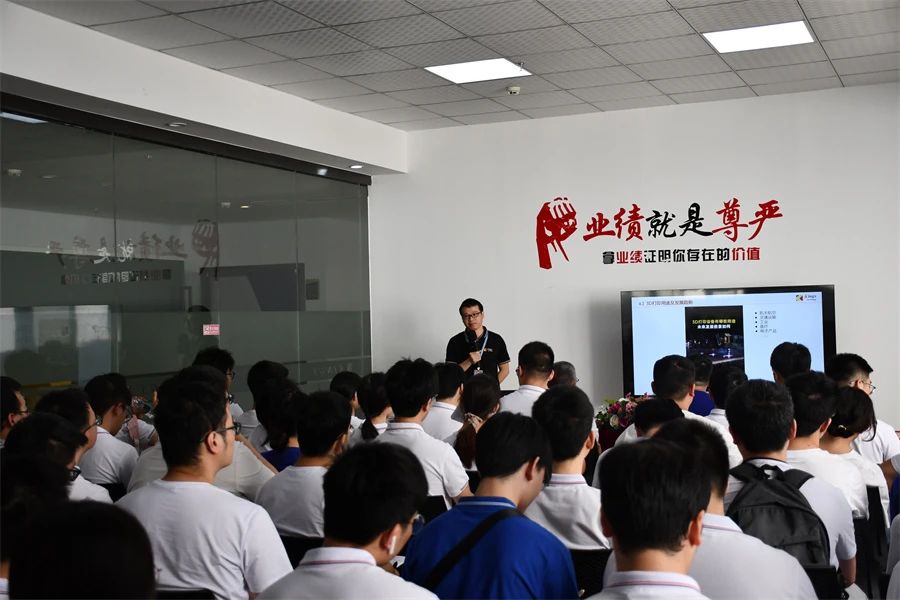 当天上午,重庆大学材料学院一行人在重庆金石2楼会议室集结,由重庆金石总经理助理柏莹雪和生产负责人闻贤贵为大家分享3D打印的行业概况、生产流程、设备材料、技术工艺和行业应用等专业知识,并提醒参观工厂的安全注意事项,为接下来学生们参观工厂打下了良好的基础。