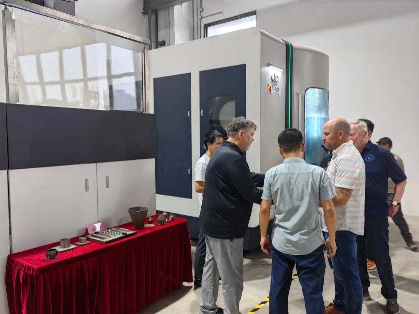 主持人宋长辉博士 研究院副院长张世钦介绍新品 集团领导(从左至右:王迪、邱海平、杨永强、江泽星、陈丙云) 本次发布会推出以下五款重磅新品: 五轴增减材数控机床LASERADD-600、电弧增材设备DED-A800和3DP金属打印设备BJ-M400-A、高速线成型光固化打印机HSLA-400以及金石金属3D打印机DiMetal系列的最新产品——高效率四激光金属3D打印设备DiMetal-500M。 设备简介 大会最后进入互动环节,全体参会人员在研究院技术人员的讲解下参观了新产品和相关的应用案例。 2023年,金石三维集团为进一步提升科研软实力,秉承以技术创新为驱动力的决心,成立金石增材制造研究院。一年以来,研究院以市场需求为导向,集中力量进行新产品研发和前沿技术攻关,在多个不同领域进行探索并成功落地应用。 此次五款新品的发布,标志着金石三维集团再添金属3DP、五轴增减材、高速线成型(HSLA)、电弧增材四大新产品线。截至目前,金石三维旗下智能制造设备已涵盖SLA、SLM、SLS、FDM、FGF、DLP、LCD、3DP、HSLA、电弧增材、五轴增减材等全品类增材制造工艺,实现多种主流智能制造技术的全覆盖,成为国内产业布局最广的3D打印科技公司之一。