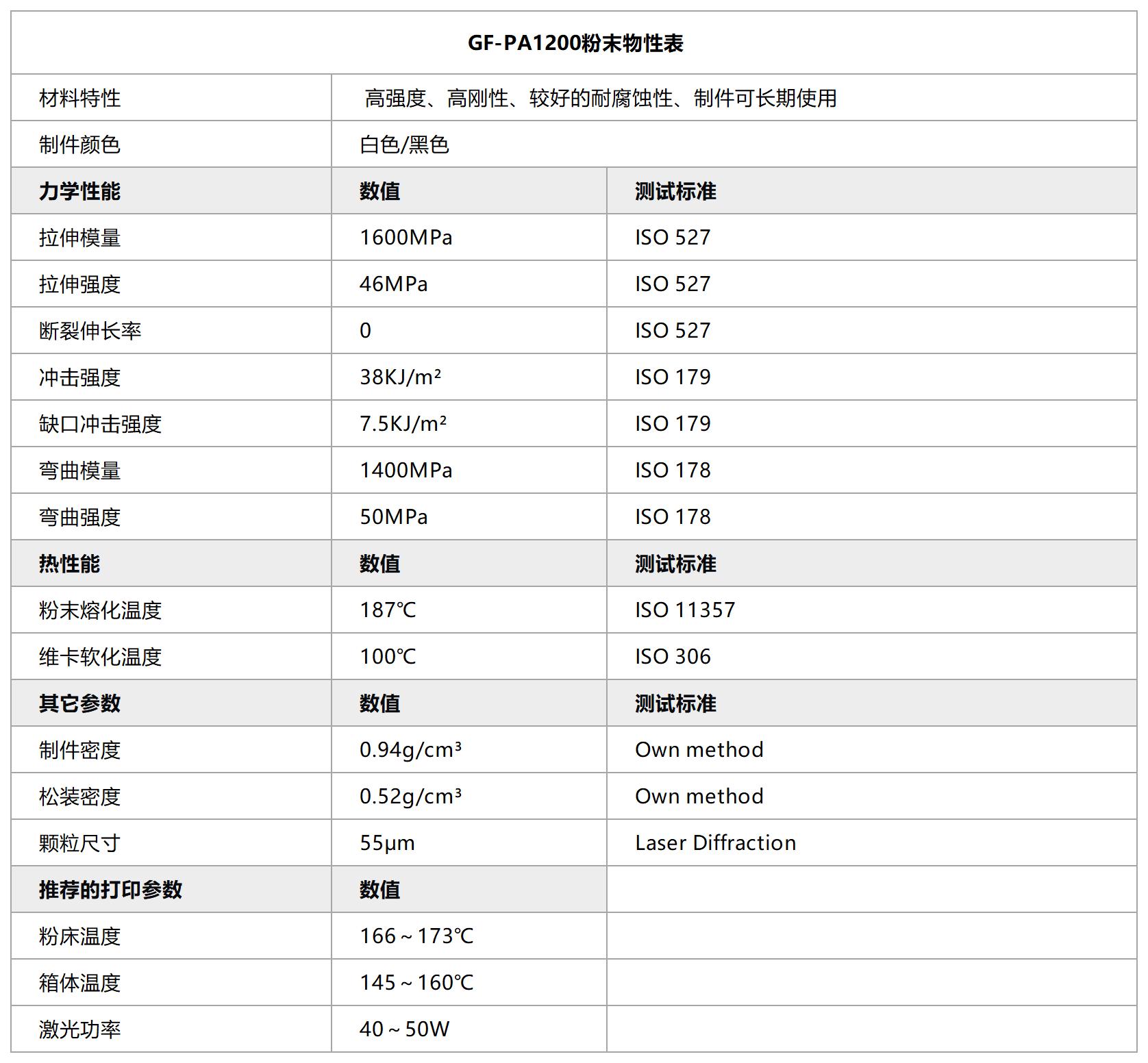 ●重复使用中颜色稳定性高 ●粉末材料粒径D50在55微米左右,分布 窄而均匀。粉末球形度高流动性极高 ●粉末复用率接近100%下仍能保持机械性 能优异,成型件表面光洁度高