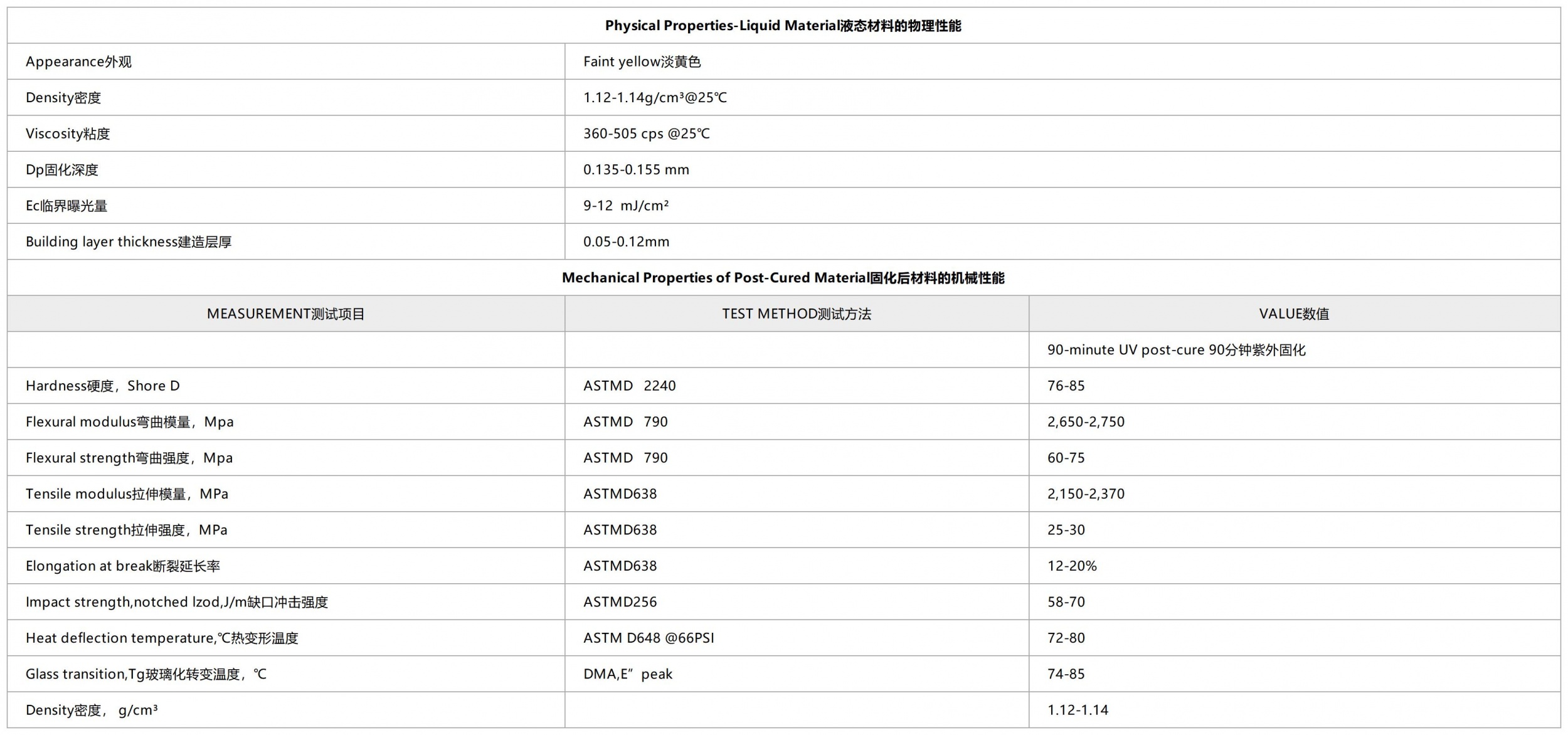 JS-UV-CBY-01 是一种具备精确和耐久特性的类 ABS 的立体光造型树脂。它被用于固态激光的光固化成型法。 JS-UV-CBY-01 可应用于鞋模,汽车,医疗,消费电子等工业领域的母模,概念模型,一般部件,功能性部件的制作。